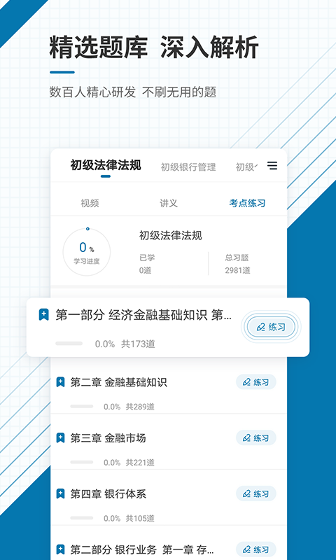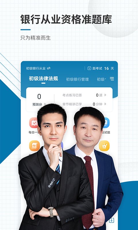 2025年银行从业资格考试力荐题库!银行从业资格学员考证都在用的备考APP,马上下载去体验!专为初中级银行从业资格考试学员精心准备的考试配套题库,内容涵盖:精选题库、强师讲解、章节精讲、高频考点、高频易错、历年真题、冲刺密卷等多个模块,随时随地学习、省时省力备考。