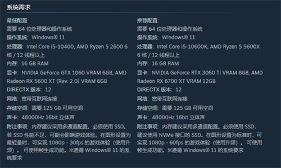 根据Steam平台上的游戏配置可以看到,《仁王3》的1080p/30fps最低配置要求是酷睿i5-10400处理器以及GTX1060 6GB显卡,而1080p/60fps的推荐配置要求是酷睿i5-10600K处理器以及RTX3060Ti显卡,入门门槛很友好,但是想要流畅玩转还是有点要求的,尤其是对于目前主流的2K显示器而言,想要高画质跑60fps,整机性能需要比推荐配置高不少才行。