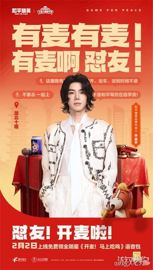 代言人华晨宇更领衔全明星开麦,游戏内领取家乡语音包,号召更多玩家上线吃鸡,开麦有朋友。