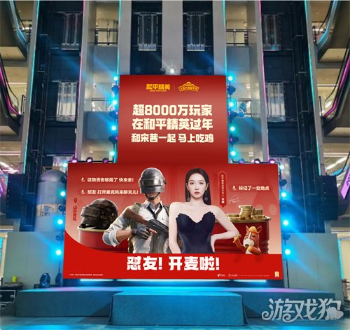 品牌代言人宋茜,也通过红包祝福和线下大屏,号召更多玩家回家马上吃鸡。