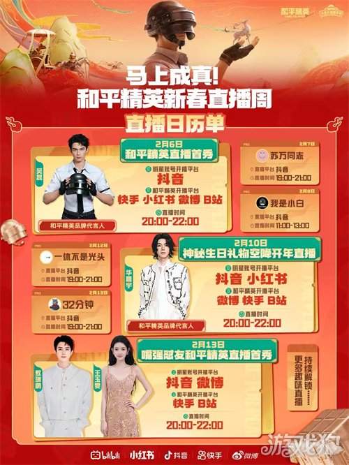 2月6日-2月13日,由多位明星达人阵容化身玩家的吃鸡人脉,组成《新春直播周》。本次直播不再是明星单方面露脸,而是实时公布房间号,明星和粉丝真正玩在一起,一起组队跑毒、攻楼、冲刺决赛圈。这还不够,他们还会回应玩家发在弹幕里的游戏愿望,玩家可以决定明星是苟到决赛圈还是现场刚枪。业内都在琢磨怎么把明星直播玩出新花样,《和平精英》这次直播给出了答案:让明星成为玩家的“吃鸡人脉”,游戏心愿,马上成真。