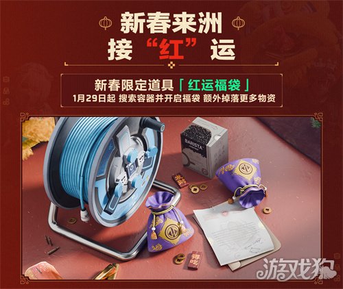 新春来洲接“红”运!1月29日起,在零号大坝、长弓溪谷地图内搜索容器,有概率获得新春限定道具【红运福袋】,开启福袋可额外掉落更多物资!2月13日起,全新烟花活动上线!在局内燃放烟花后,有概率掉落新春红包、新年大红及非洲之心!2月16日起,【新年快乐】语音返场发放,登陆游戏即可领取!