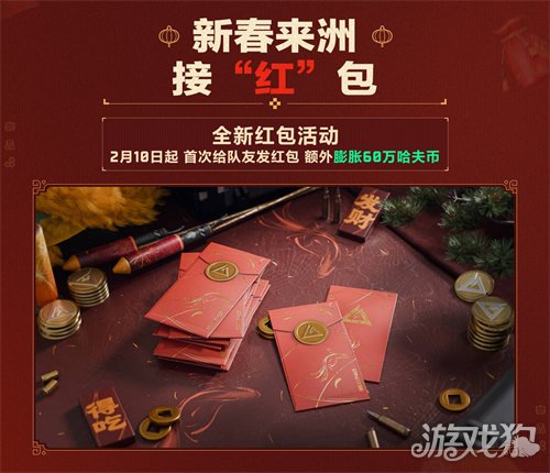 新春来洲接“红”包!2月10日起,全新活动开启,玩家可在局外包【拼手气红包】,并带入局内给队友发红包,首次给队友发手气红包,额外膨胀60万哈夫币!一起欢度新春!