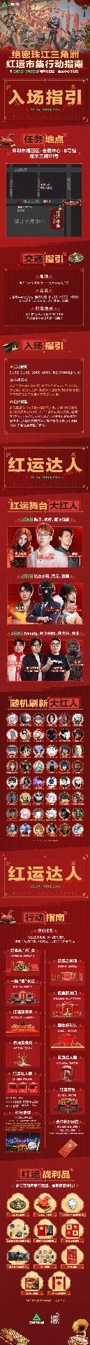 新春打卡赢好礼,专属周边等你拿!2月5日-2月12日,参与以上任意一项线下新春活动,拍摄打卡图片或视频,带双话题#三角洲深圳红运市集、#三角洲行动,发布至抖音、bilibili、快手、微信视频号、小红书、微博任一平台,即可参与新春特别任务。3月1日,官方将在上述平台各抽取3位参与任务的幸运干员,送出《三角洲行动》官方周边大礼包一份。