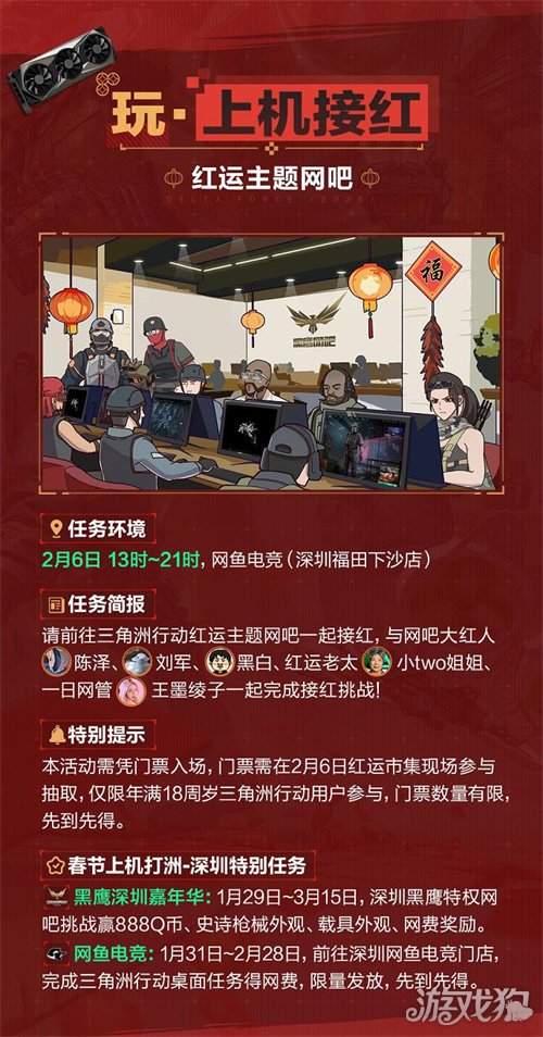 2月6日,深圳全城活动正式开启,多重特色活动轮番上线,干员们可以一起逛红运市集、赏灯光秀、玩主题网吧、品联动美食等!