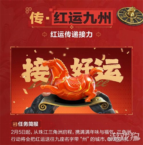 红运不止珠江三角洲,美好奔赴九州。2月5日起,《三角洲行动》将从珠江三角洲出发,携满满年味与福气,将新春红运送往九座名字带“州”的城市,敬请期待!