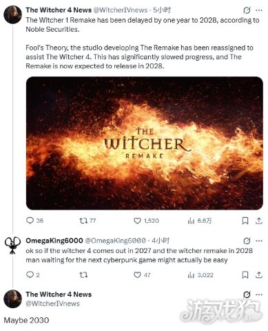 这意味着《巫师4》有望在2027年底发售,而2028年将迎来《巫师1:重制版》,2030年迎来《赛博朋克2》。