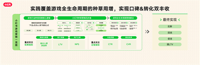 • 同时我们也针对游戏全生命周期(覆盖预热测试期、公测大推期、长线运营期),提供了精细化的营销解法。让增长不再是单点爆发的博弈,而是成为可孵化可经营的长久生意,打造小红书成为覆盖游戏全生命周期的高价值用户运营阵地。