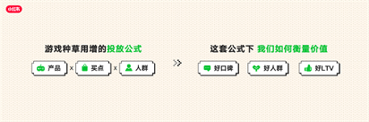 • 游戏行业的增长破局,关键在于精准洞察玩家需求,通过“产品×买点×人群”的科学种草用增投放公式,实现细分人群需求与场景的精准匹配。