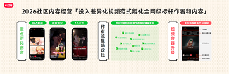 • 2026社区经营全方位升级,面向视频和直播赛道下重注,重点孵化差异化视频范式和头部主播,持续投入版权赛事内容。