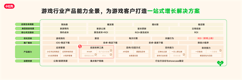 • 围绕游戏核心场景,覆盖 “预约-下载-激活-付费”的一站式产品链路,并持续向ROI等深度转化场景拓展,为不同营销目标提供完整解决方案,实现效率与效果的双重提升。