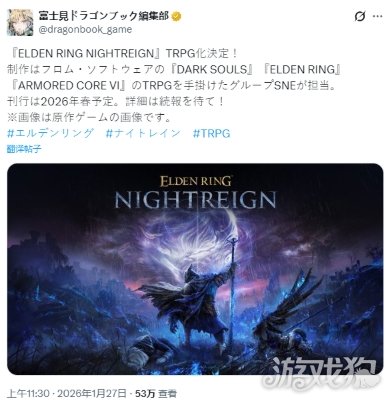 近日《艾尔登法环:黑夜君临》官方宣布,将推出TRPG,由制作过《黑暗之魂》《艾尔登法环》《装甲核心6》TRPG的GroupSNE负责,预计于2026年春季推出。