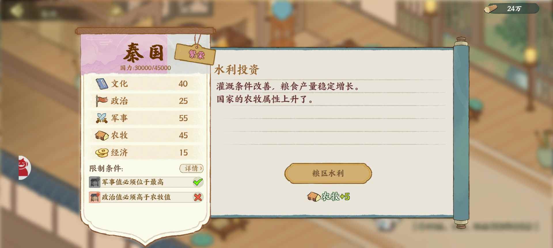华夏绘世录商鞅曾主持变法,助孤理政当不在话下【秦国政务选择】如下: