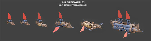 在数周时间里,团队只关注纯粹的形态,没有纹理和细节。他们为单个部件确定细节级别,根据概念图制作风帆、船体等元素。飞船从粗糙工业化开始,逐步添加复杂部件,赋予它们特征和个性。
