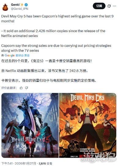 自Netflix《鬼泣》动画播出以来,《鬼泣5》又卖出了242.6万套,Capcom表示该强劲销量得益于和Netflix《鬼泣》动画同步执行的定价策略。
