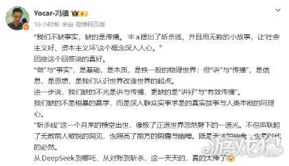“我们不缺事实,缺的是传播。 牢a提出了斩杀线,并且用无数的小故事,让‘社会主义好、资本主义坏’这个概念深入人心。”