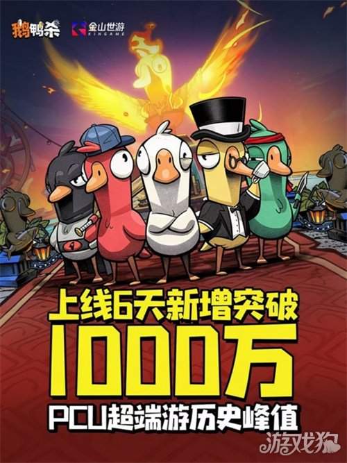 由金山世游独家代理、虎牙联合发行的社交推理手游《鹅鸭杀》自上线以来,迅速引爆全网。上线仅6日新增用户突破千万,同时最高在线人数(PCU)已超越Steam端历史峰值,累计斩获全网热搜近百个,并在多个主流平台登顶榜单TOP1。