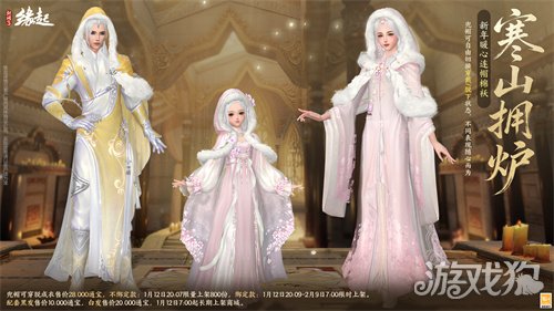 啾啾圆似栗,暖裘惬意温。《剑网3缘起》新品外观1月12日上架,夜照金鳞主题外装礼盒「坠夜流金」奢华现世墨色流金间神龙隐现,愿祥瑞伴身,祝侠士新岁如龙腾万里,步步登云。深冬凛冽,兜帽可穿脱外观「寒山拥炉」即将上架,锦衣拥炉,绒暖护身。更有肥啾灵禽啾啾,喧腾报喜,这一岁,自是满堂欢庆,热闹非凡!