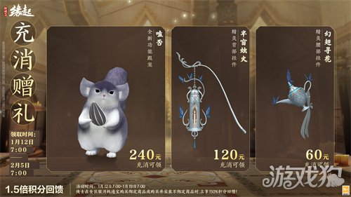 《剑网3缘起》1月12日充消赠礼更新,1.5倍积分活动同步开启。最高档可解锁萌趣跟宠「嗑否」,带上嗑瓜子”好搭档、一起闯荡江湖吧!