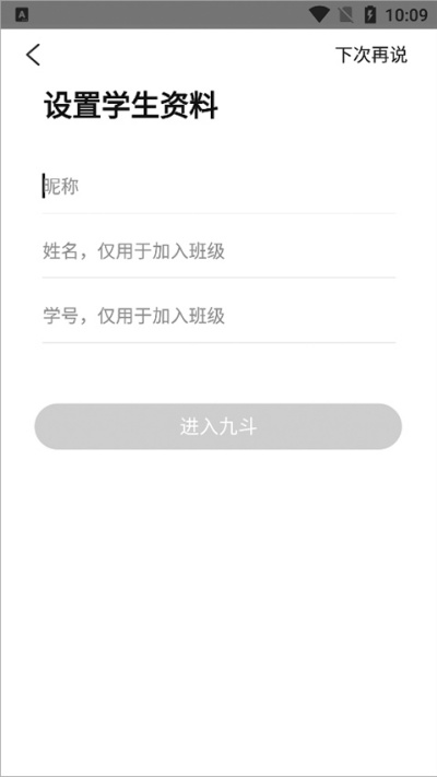 2、进入应用界面后按照提示填写姓名与班级等基础信息内容,完善个人资料以便后续加入对应学习环境。