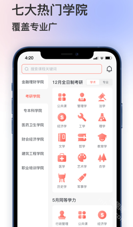 支持按学科分类快速查找课程内容,进入对应学习模块获取所需知识资源,提升内容获取效率与针对性。