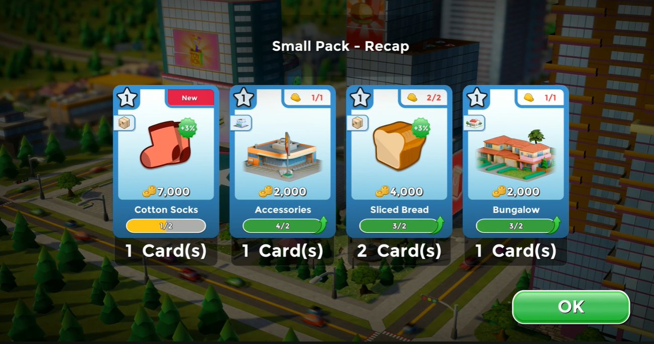 每天打开免费卡包,获取新建筑、装饰物、载具等等。寻找卡牌来解锁新建筑,并升级它们以增强现有基础设施。探索拥有卓越属性的稀有史诗卡牌,例如高耸的摩天大楼和令人惊叹的景点。