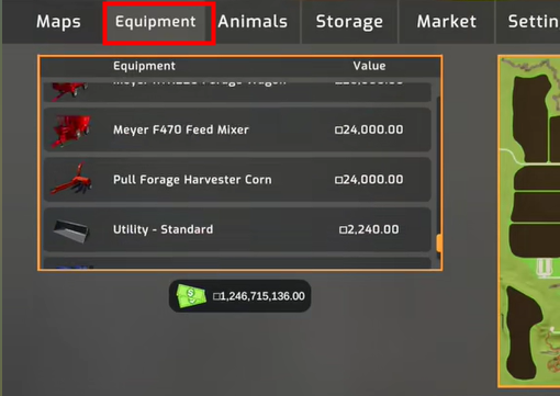 7、进入游戏设置,在“equipment”下,是你现在所拥有的所有设备和交通工具,你可以在这进行出售或者选择驾驶