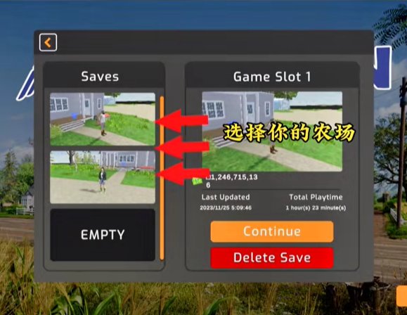 2、选择好自己的农场,点击“continue”继续游戏
