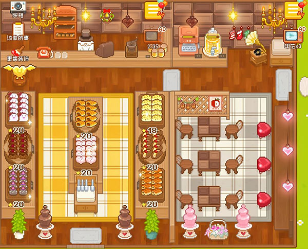 (4)解锁更多店内品尝服务即摆放更多桌椅,需要完成一定数目的电话订单。