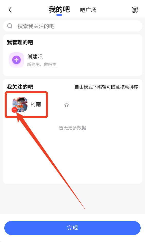 4、以上就是本站带来的如何取消关注的吧的过程。
