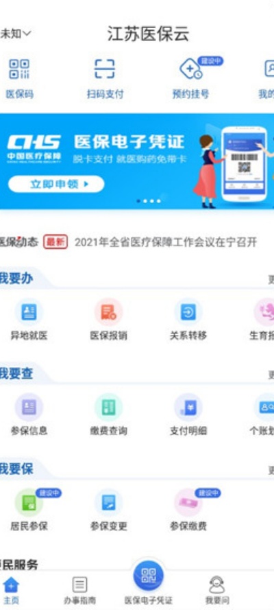 1、在本站下载安装江苏医保云APP后进入首页,可查看医保查询、业务办理等各项核心功能入口与服务模块内容。