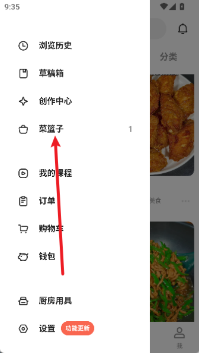 5、在菜单中点击菜篮子选项进入已收纳食材查看页面。