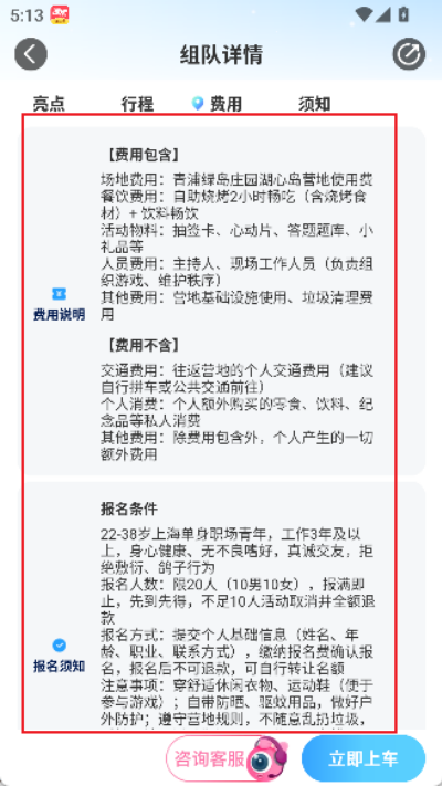 5、进入费用页面后即可查看完整费用详情与各项费用构成说明信息。