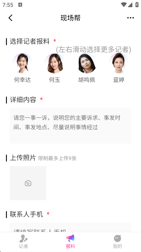 3、填写报料内容,填写好之后点击【提交】即可