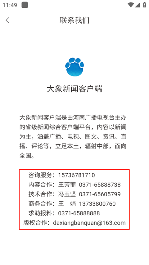 3、您可以在此页面查看官方的联系咨询电话再联系官方记者。