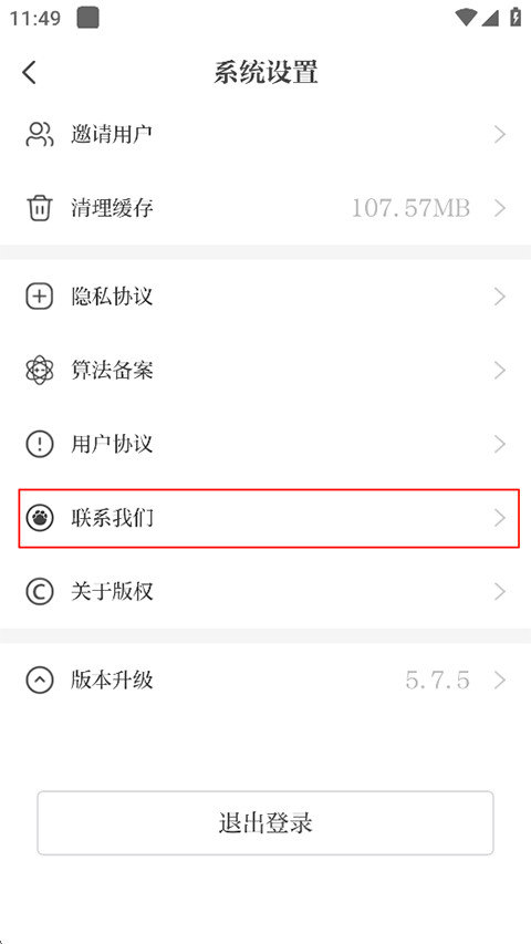 2、点击联系我们;