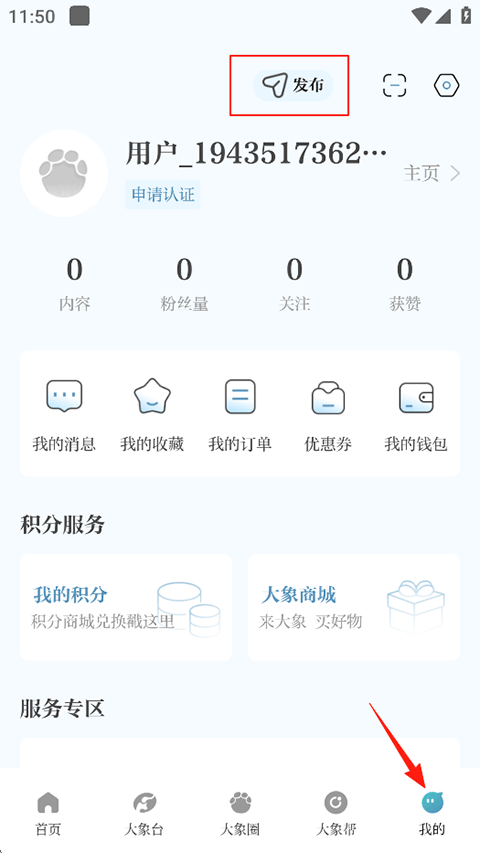 1、点击我的-右上角发布;