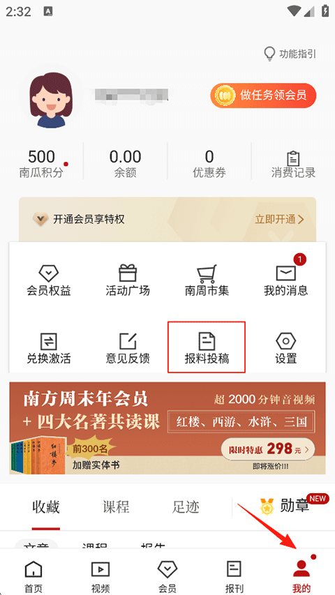 1、点击我的-爆料投稿;