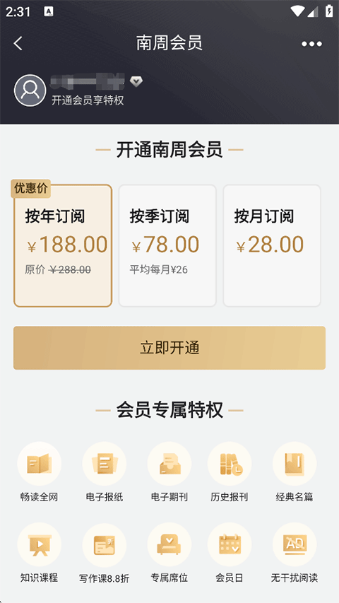 3、南周会员专区:电子报刊、发现人文好课。