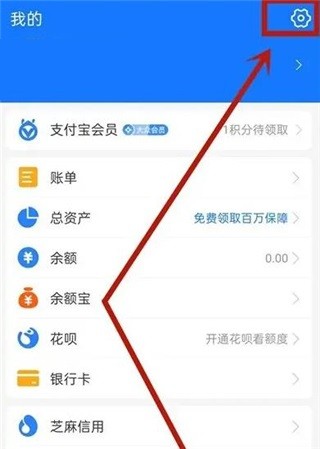 1、打开支付宝,点击【我的】,点击右上角【设置】图标